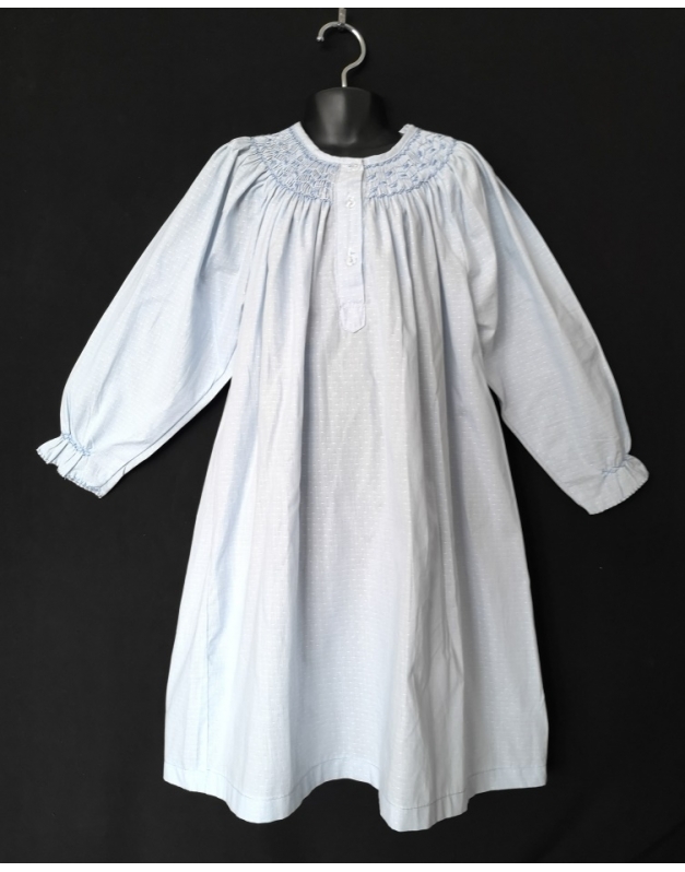 Jolie chemise de nuit fille col volanté amicie en popeline de coton rayée bleue ciel et blanche.le charme d'une jolie chemise de nuit longue et de son col volanté ! Coupe droite légèrement évasée sur le bas pour plus d'aisance. 100% coton oxford pour cette chemise de nuit fille manches longues en coton. Un choix unique de chemise de nuit manche longue grande taille disponible dans notre magasin. 59 cm notre mannequin mesure 1m74 et porte une taille 36.